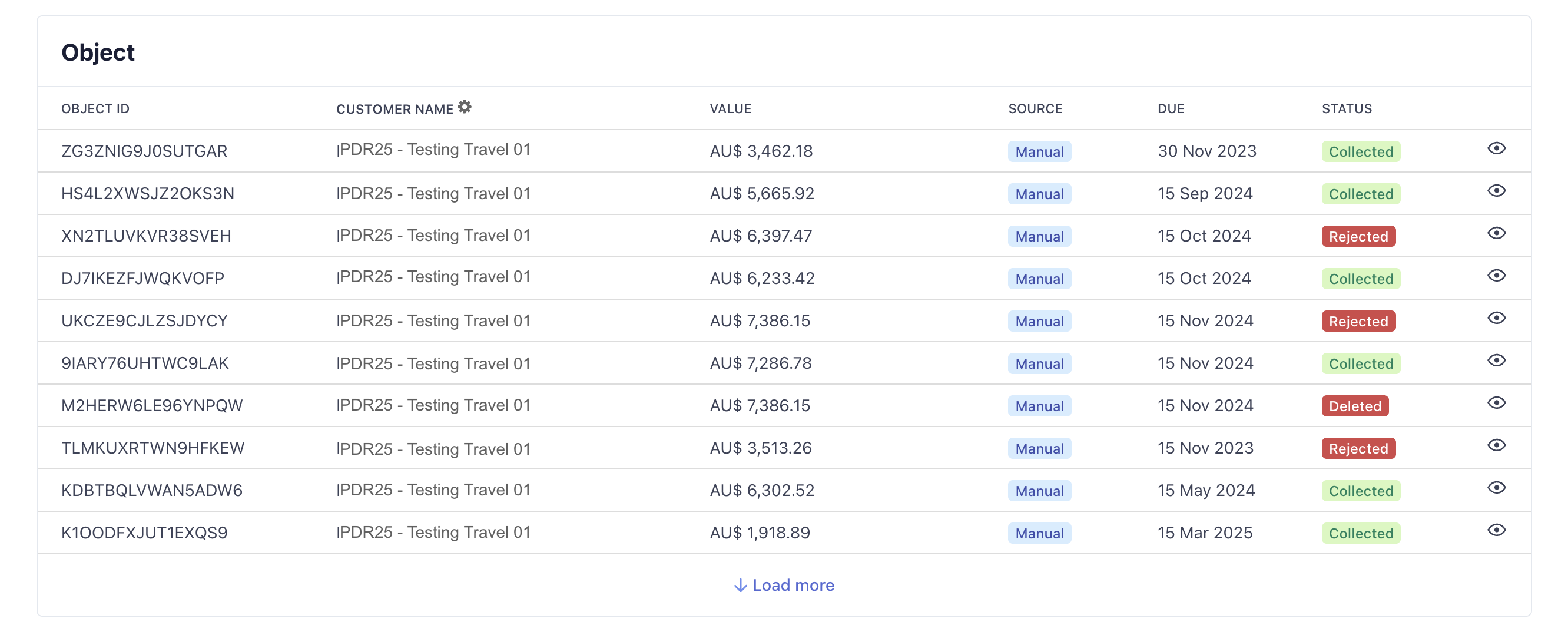 You can also easily track all the tokens and objects you have received for this supplier. This consolidated list will not including draft or deleted token and objects.