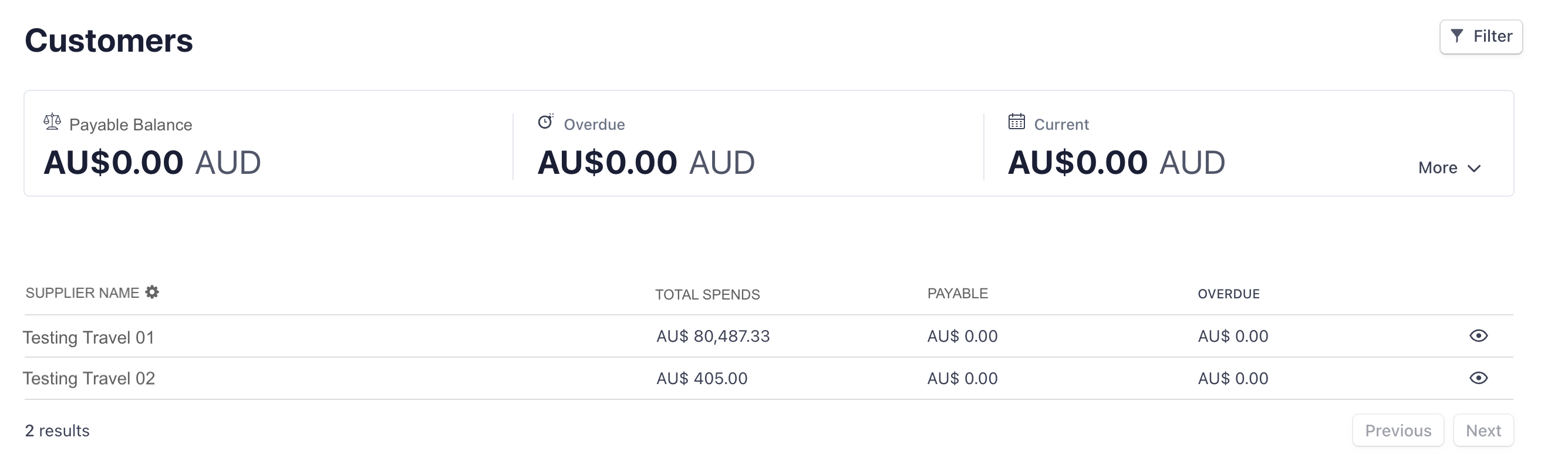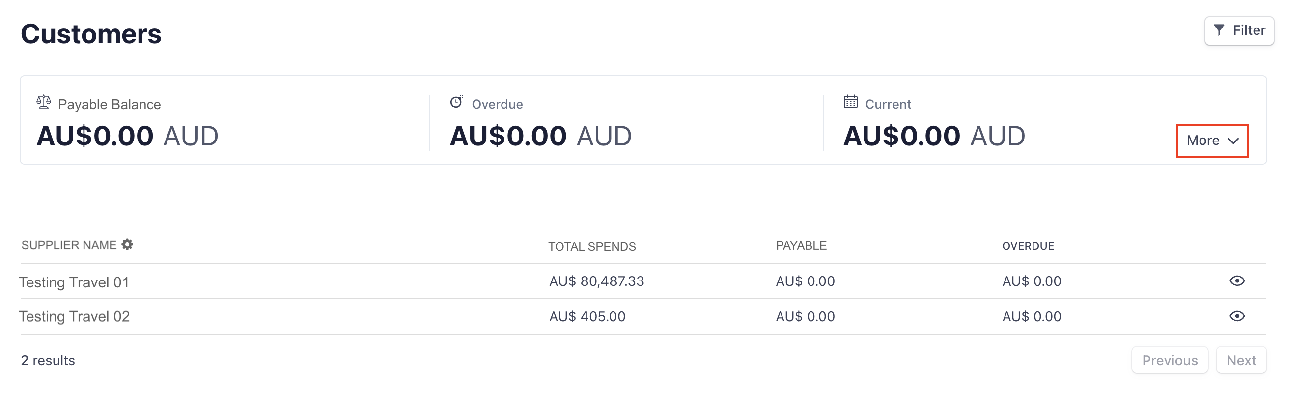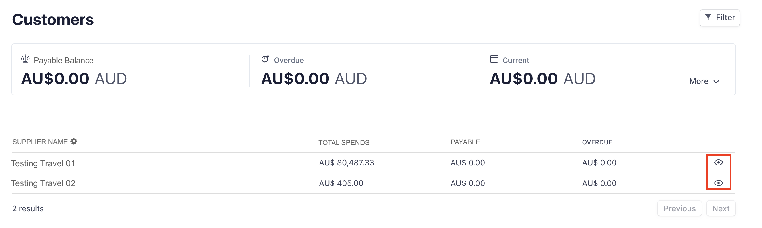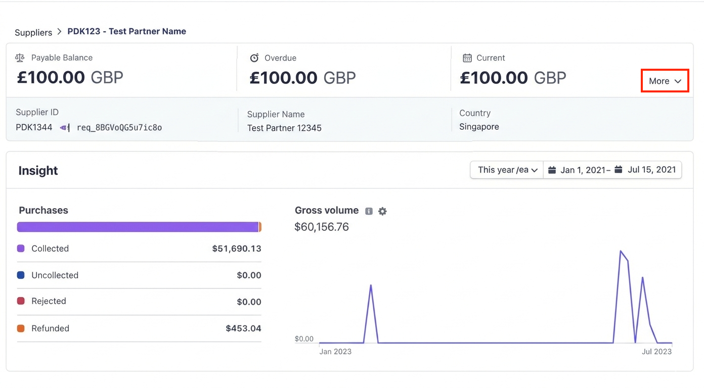4. To view the supplier statistics in detail, click into the eye icon of the individual supplier's name
