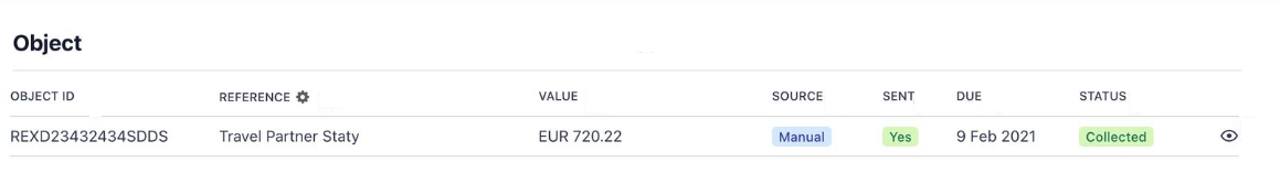 A Collected status on the Object means payment has been received. This triggers a set of automatic updates to the invoice to reflect that the liability has been settled.