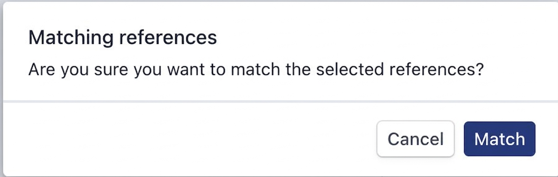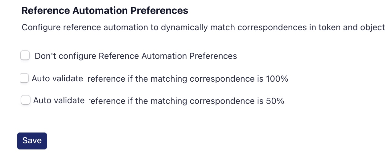 These checkboxes control whether matched tokens are linked automatically at 100% confidence, 50% confidence or not at all. The correct configuration here determines how much of the matching process is handled without manual intervention. |