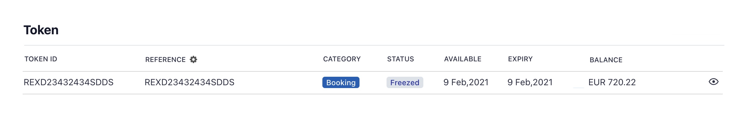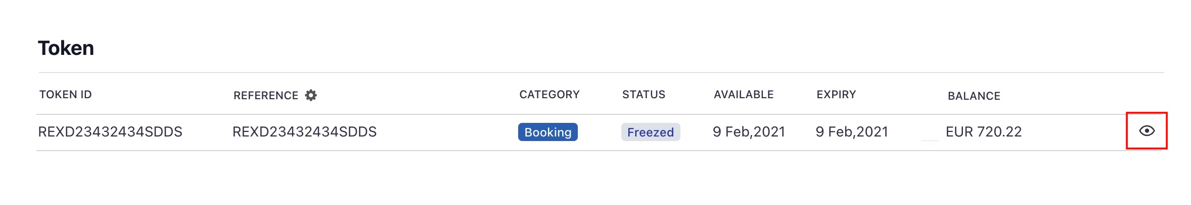 The linked token is also surfaced in the manage invoice or manage booking order view, in a token reference table. Multiple tokens can appear in this table if, for example, the invoice covers several bookings.