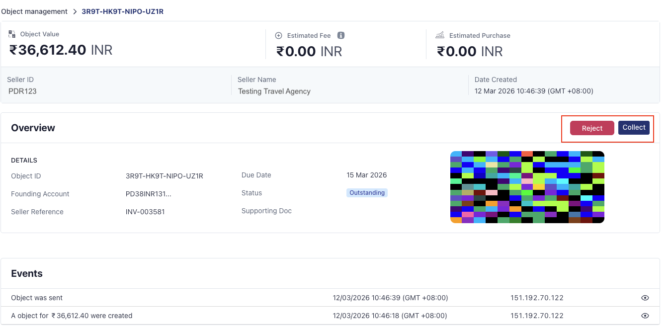 2. Click Collect if there's no issue with the Object. You can also click Reject if there is an error.